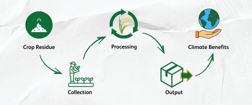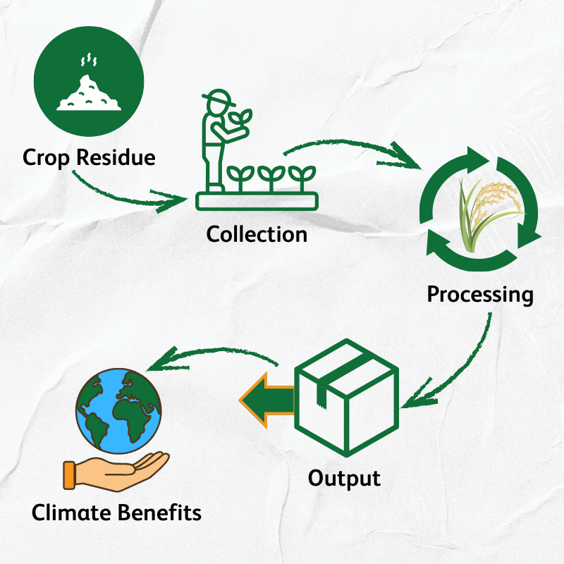 We connect farmers, industries, and corporates through a circular ecosystem that converts agricultural residue into valuable climate-positive products.